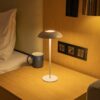 The lamp uses an endless dimmer touch switch, so you can intuitively control the brightness with a single press. A warm 3000K glow makes it ideal for relaxed environments, while the rechargeable 2600mAh battery ensures up to 6–8 hours of cordless use. It recharges easily via the included USB cable, giving you complete flexibility for placement without worrying about plug sockets.