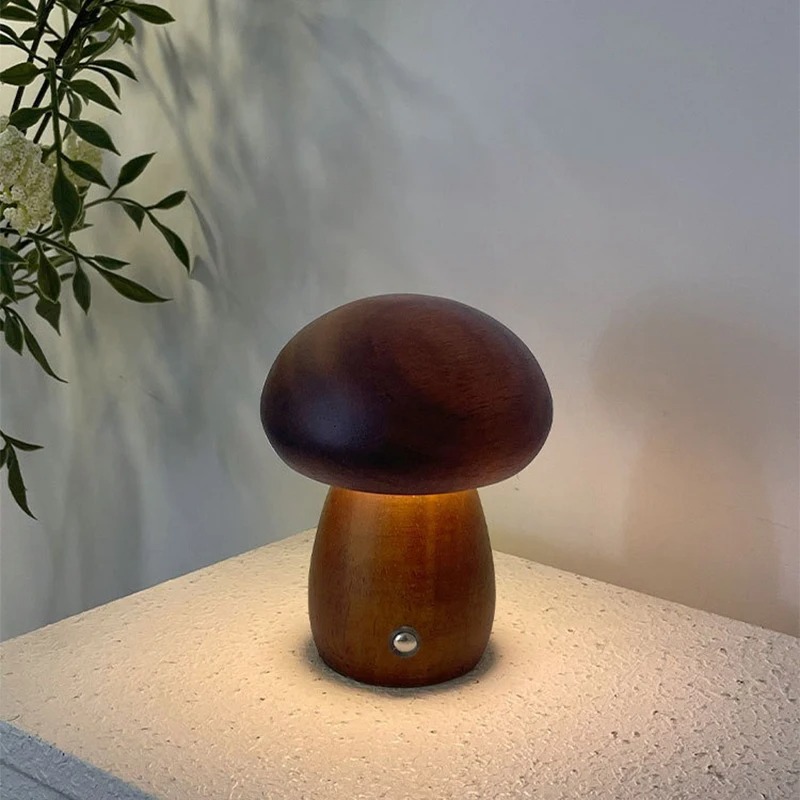 Wooden Mushroom Rechargeable Table Lamp